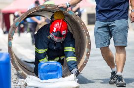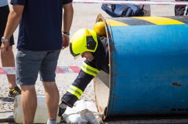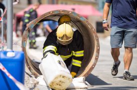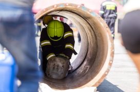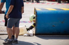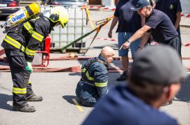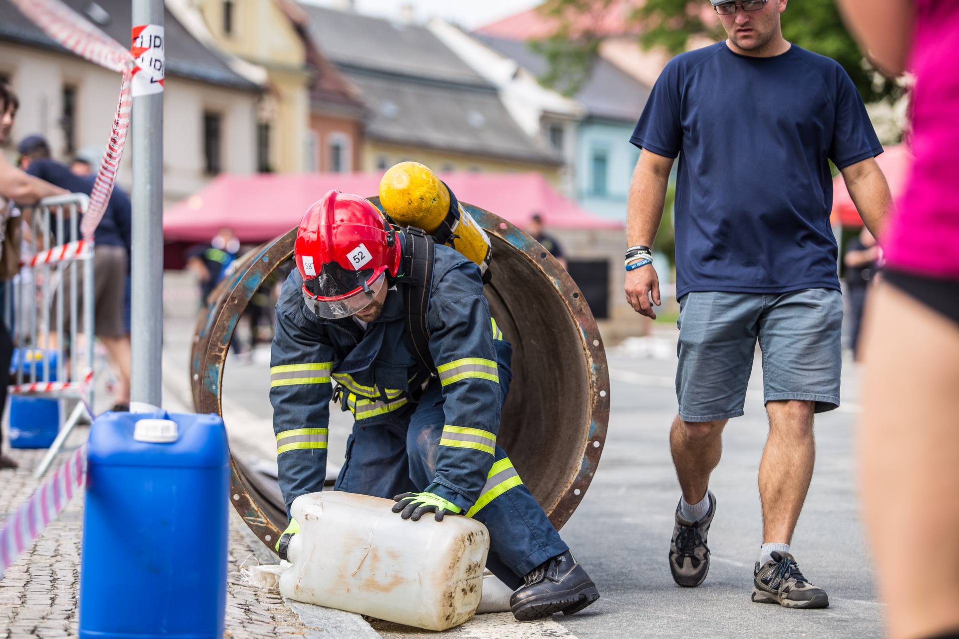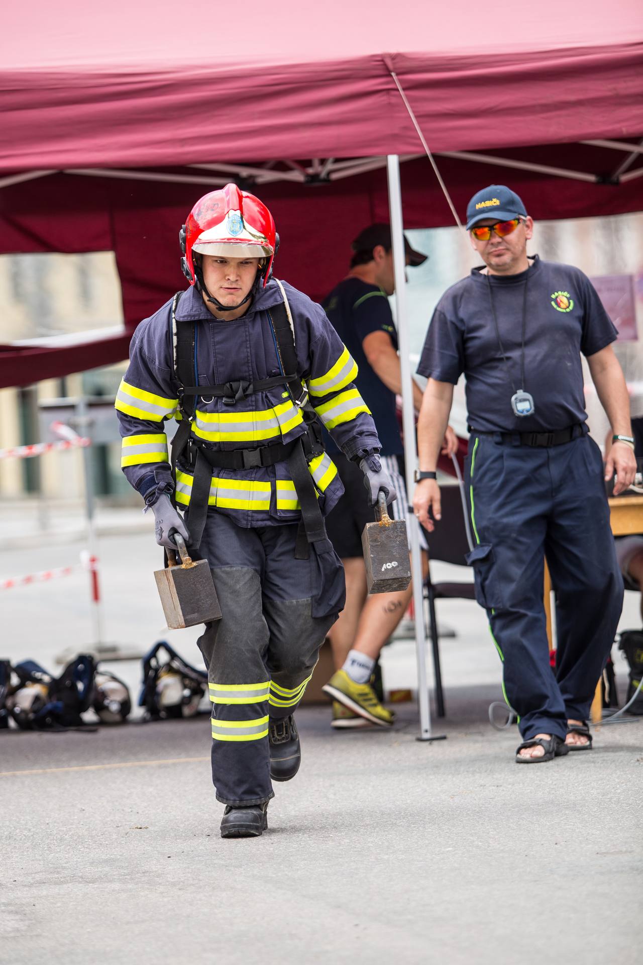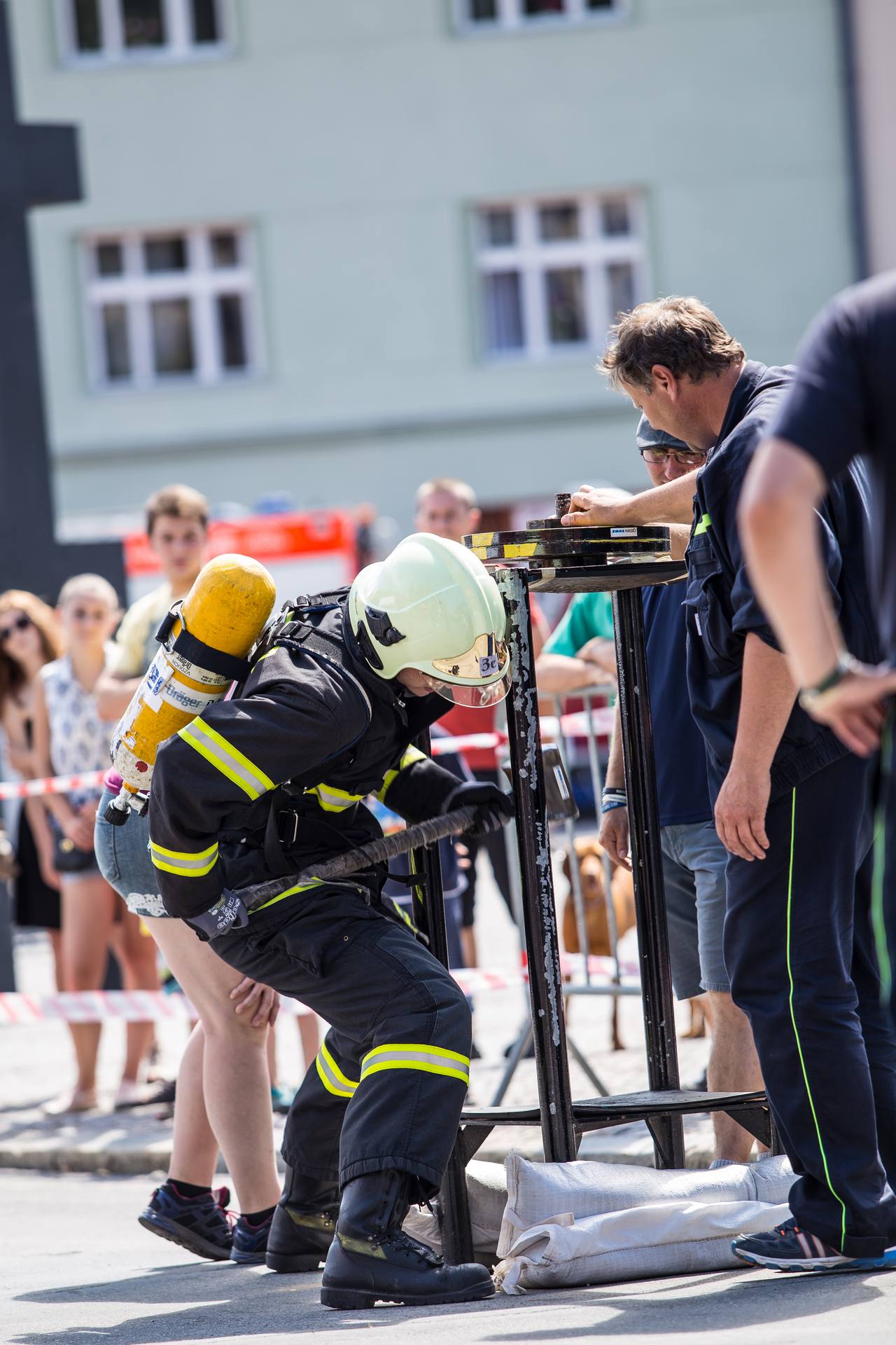 Soutěžící museli běhat v těžké hasičské výstroji. Nosili hadice, barely s vodou, máchali těžkým kladivem a lezli na vysokou věž postavenou z lešení. Vše mělo simulovat náročnost požárního zákroku a otestovat odolnost soutěžících.